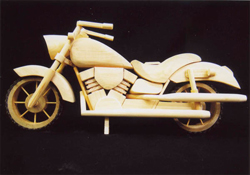 プラモデルの様な縮尺率と精巧なミニチュアづくりではない、木のぬくもり、楽しさがほのかに伝わる木づくりのインテリア、ノベルティーグッズとして複葉機、オートバイ、ヘリコプター、トラック、トレーラー、ショベルカー、カブトムシ、クワガタなどを製作。