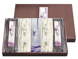 「水都紫(すいとむらさき)」は大垣で獲れたお米と大垣の水で出来た無着色・無添加、米粉100%のうどんです。